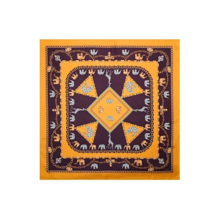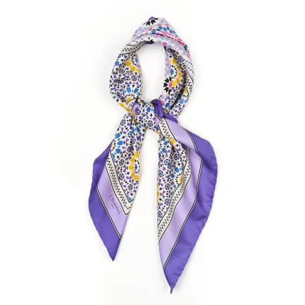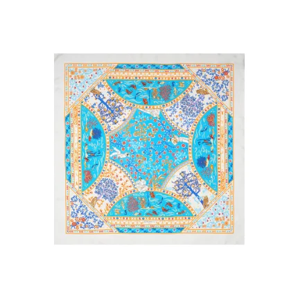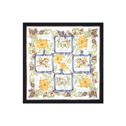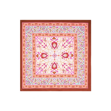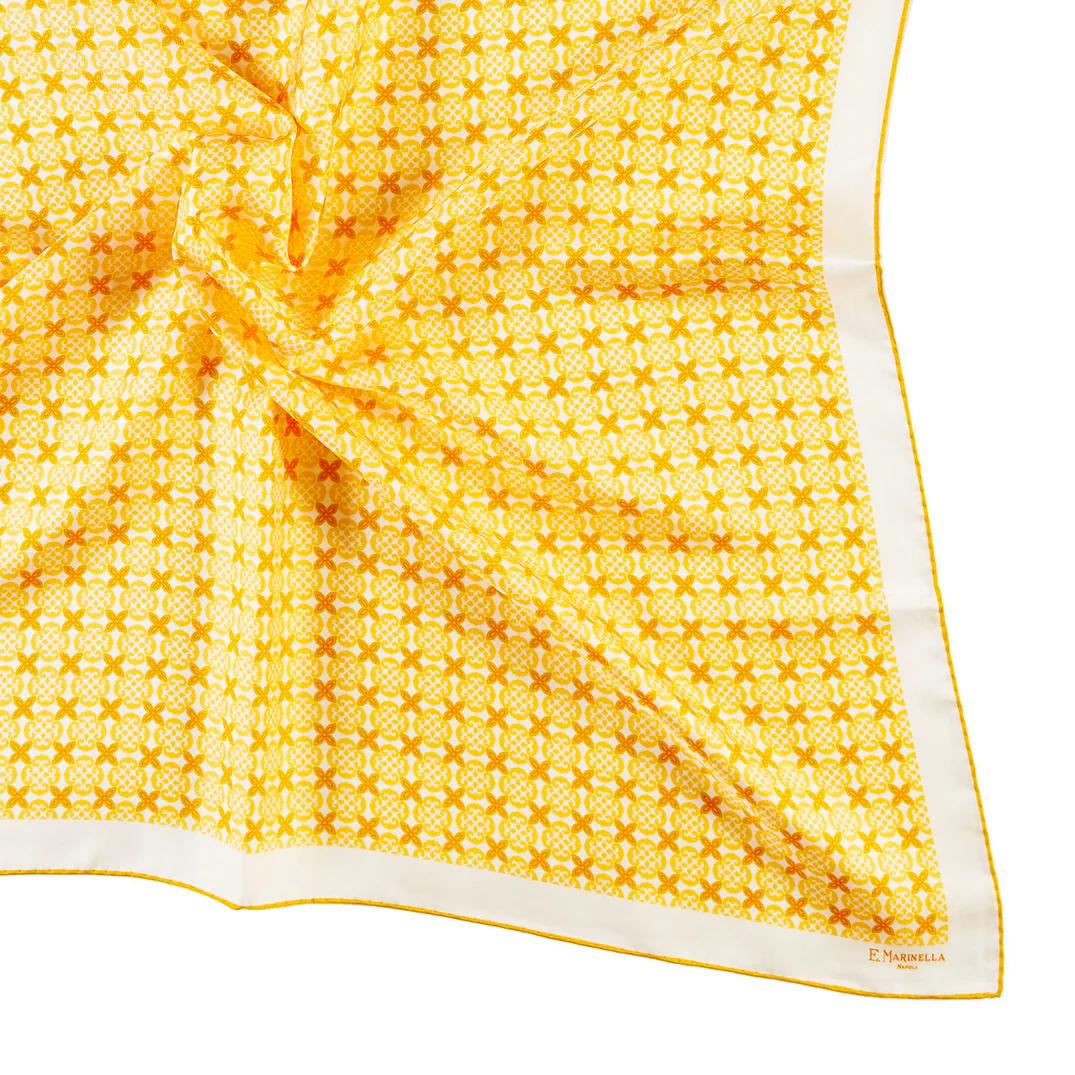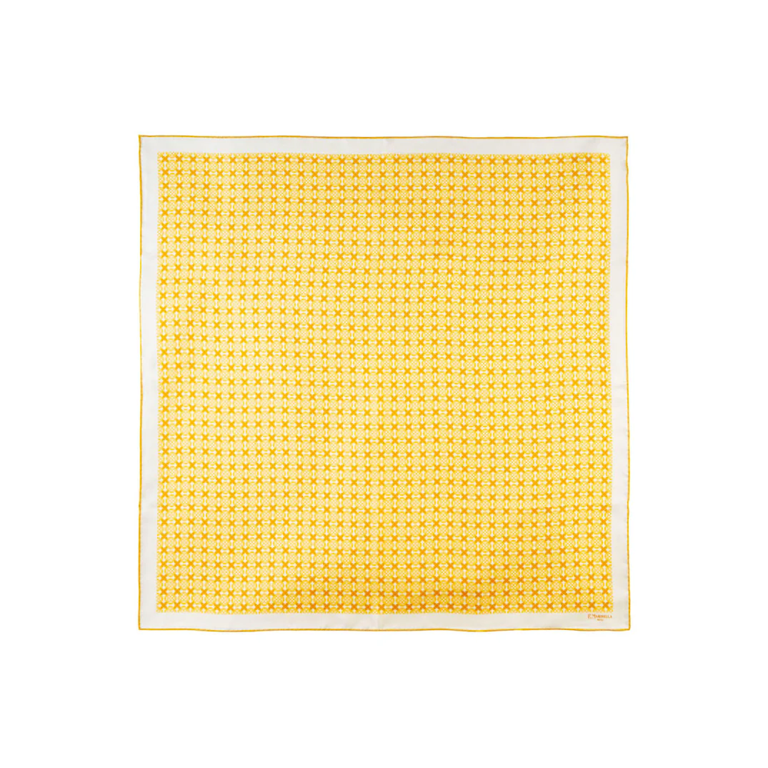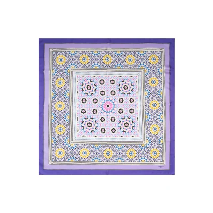 Inyecta luz y alegría a tu vestuario con este fular de seda de Lilou. Un diseño que celebra la luminosidad de los patios andaluces a través de un patrón geométrico refinado y un color radiante.