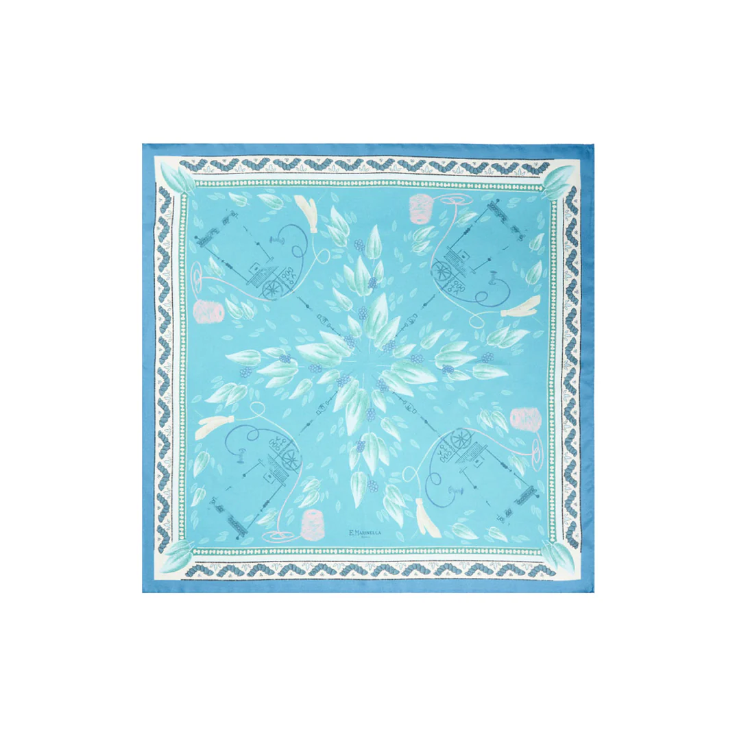 Envuélvete en la delicadeza de este fular de seda de Lilou, un diseño que captura la serenidad de los paisajes del sur y rinde homenaje a los antiguos oficios textiles.